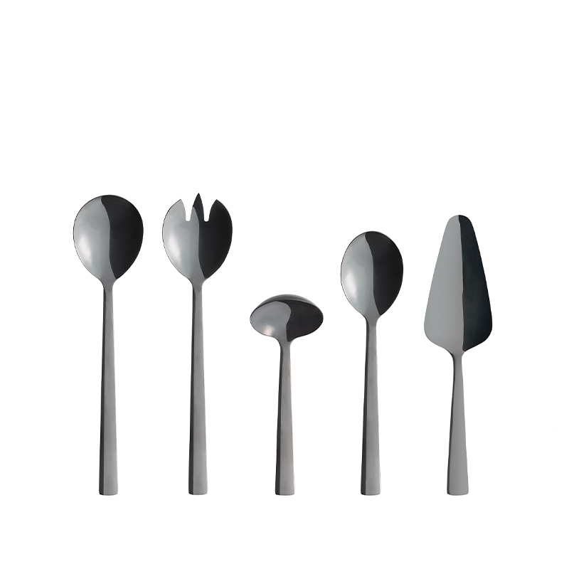 Bestikket, i rustfrit stål, har et råt og enkelt udtryk, der er som skabt til den nordiske borddækning. Sættet består af en salatske, salatgaffel, kartoffelske, sauceske og kagespade, så du har køkkengrejet til alle anledninger. Sættet er lavet i samarbejde med Christiane Schaumburg-Müller. Tåler opvaskemaskine på max 50 grader.