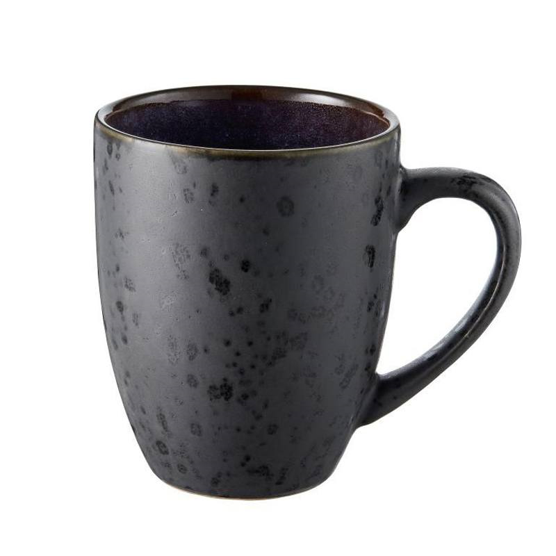 Bitz krus med hank i stentøj med mat sort glasur på ydersiden og blank mørkeblå på indersiden.