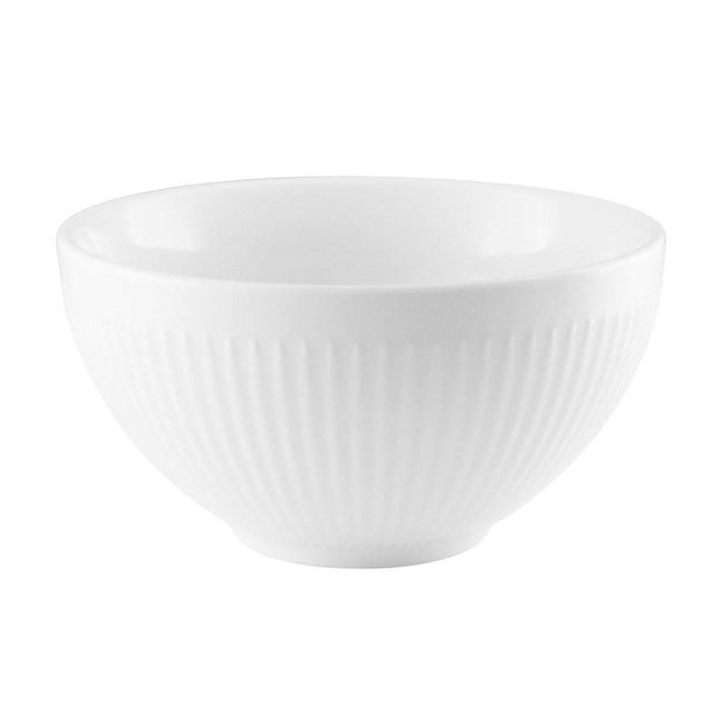 Eva Trio Legio Nova skål 0,4 liter. Porcelænet med de flotte riller – der er med til at danne en flot ramme og fremhæve anretningen. Tåler maskinopvask, frys, ovn og microbølgeovn. 10 års porcelænsgaranti