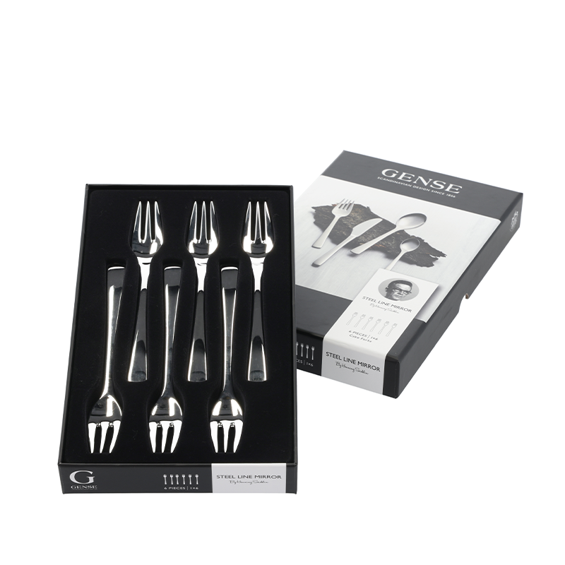 Sæt med 6 stk. Steel Line kagegaffel.