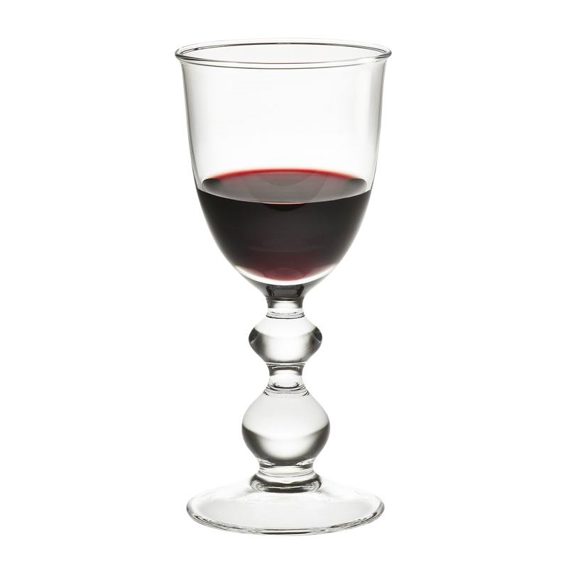 Holmegaard Charlotte Amalie rødvinsglas 23 cl. Et flot klassisk glas fra Holmegaard designet af Per Lütken – denne model er opkaldt efter hans kone. Et yderst dekorativt glas der også kan bruges til anretning af fx forret, desser eller sågar som en lille vase.Hvert glas er et stykke unikt mundblæst stykke glas håndlavet af glaspusteren der omhyggeligt blæser præcist den rigtige mængde luft gennem den smalle pibe. I denne proces er luftbobler uundgåelige men er kun med til at bekræfte at det er et stykke unikt håndlavet glas