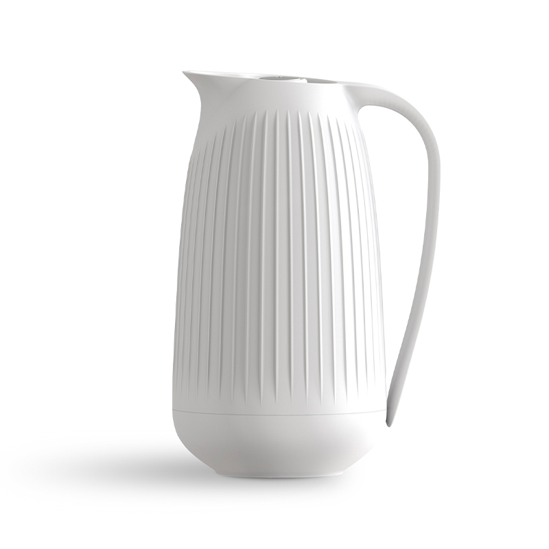 Hammershøi termokanden fra Kähler er den perfekte tilføjelse til kaffebordet med sin matte silke-finish, der på fineste vis fremhæver de velkendte Hammershøi-riller. Termokanden har foruden glasindsats også en yderst behageligt, blødt håndtag, som gør kanden rar og nem at håndtere. Skrueproppen med den indbyggede trykknap i højglanspoleret rustfrit stål, gør denne Kähler kaffekande let at hælde fra. Hammershøi termokaffekanden i hvid kan med fordel kombineres med andre Hammershøi serie såsom Poppy og Summer.