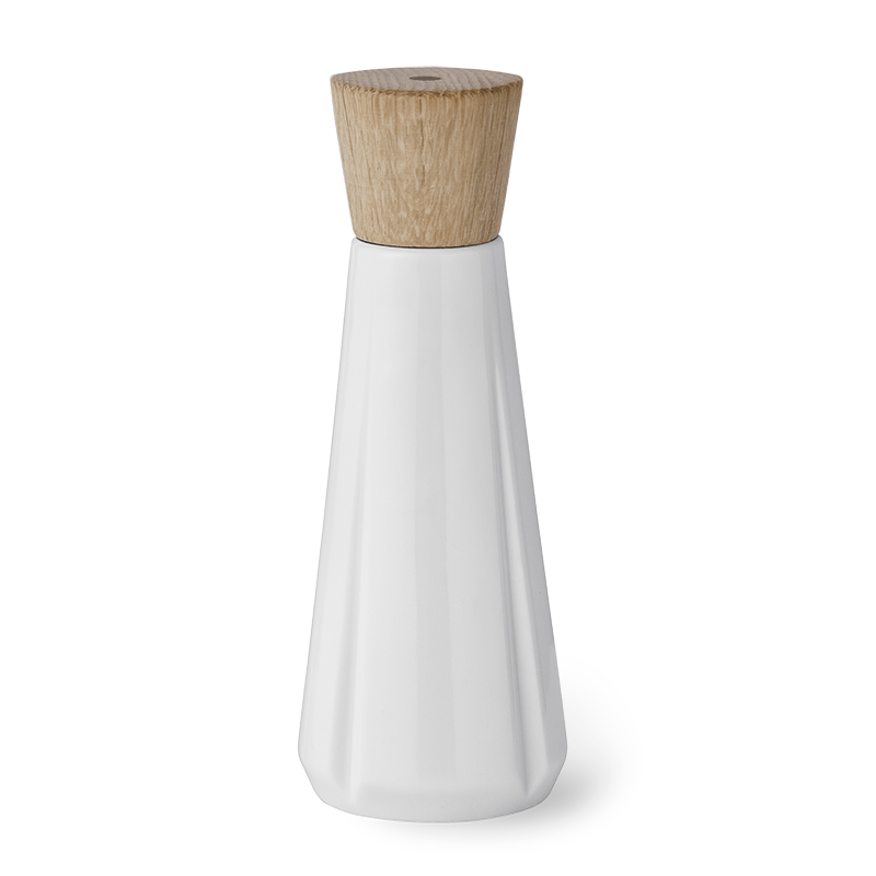 Den smukke og stilrene kværn i porcelæn vil ikke blot være en funktionel genstand, men også smuk at have stående på bordet – uanset anledning. Grand Cru kværnene har desuden den fantastiske og unikke CrushGrind funktion. Det betyder, at kværnene indeholder en dansk, patenteret teknologi i topkvalitet, der er med til at frembringe den bedste gastronomiske oplevelse i køkkenet. Takket være kværnene kan du indstille finheden, og derfor ikke blot kværne salt og peber – du kan også bruge dem til at kværne tørrede urter og krydderier, så der frigives skønne essentielle olier og aromaer.