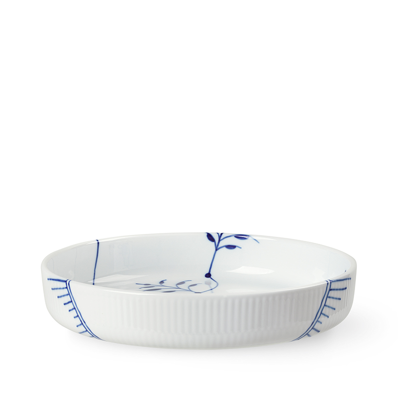 Smukt, klassisk og tidløst er lige hvad dette runde, ovnfaste fad fra Royal Copenhagens Blå Mega Riflet serie er. Nu kan du tilberede lige det du vil direkte i fadet, som du ønsker at servere fra. Så er der mindre opvask! Fadet vil pryde et hvilket som helst spisebord med sit æstetiske design, uanset om det er mandag aften, hvor hele familien samles om aftensmaden, eller om det er til middagsselskabet med venner i weekenden. Dette runde Royal Copenhagen fad er ideelt til tærter, quiche eller kartofler – alt behøver ikke være så firkantet!