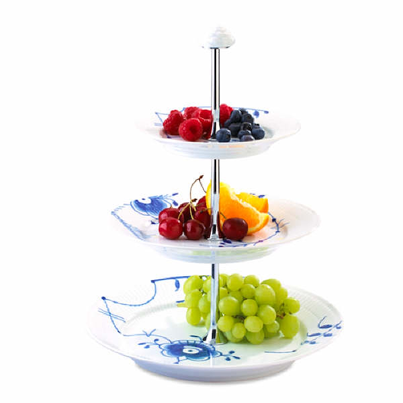 Royal Copenhagen Blå Mega Riflet etagere / opsats. 3-delt. Design: Karen Kjældgård-Larsen. Håndmalet.