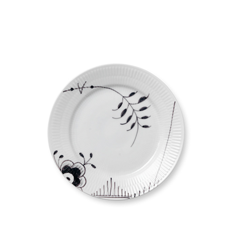 Royal Copenhagen Sort Mega Riflet, tallerken 19 cm. Med denne smukke tallerken fra Royal Copenhagen sikrer du dig en unik borddækning der gør maden mere indbydende. Sort Mega Riflet er en del af Royal Copenhagens mange serier, og denne bryder den klassiske hvid og blå farve der normalvis kendetegner Royal Copenhagen, med en moderne og sofistikeret stemning.