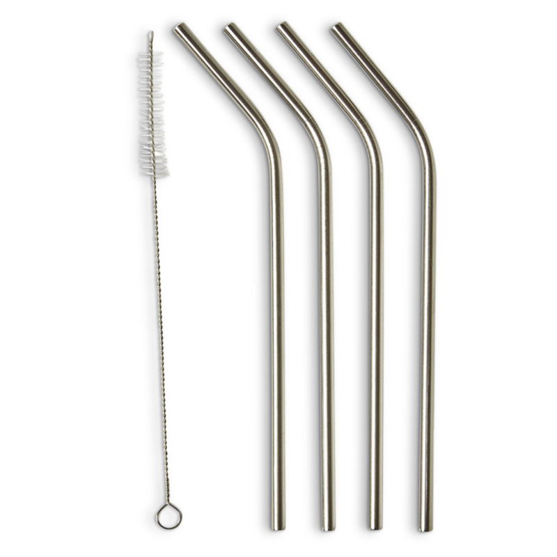 Sugerør Rustfrit Stål Med Knæk Inkl. Børste 4 Stk.