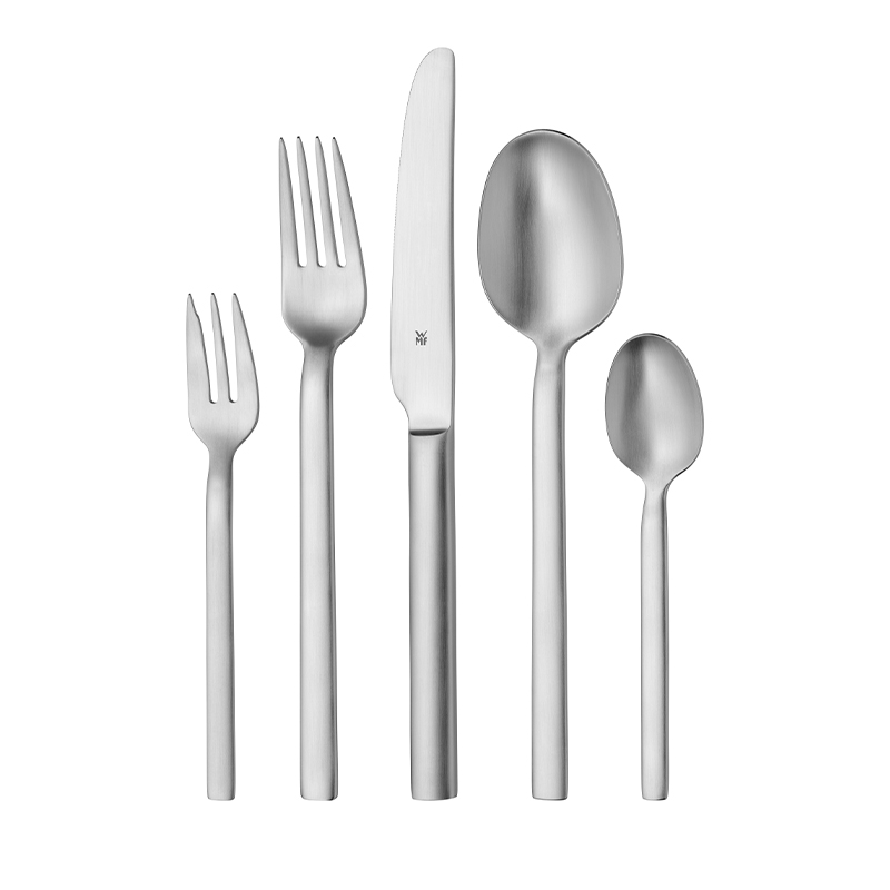 Her får du et bestiksæt bestående af 60 dele fra WMF’s smukke og tidløse Alteo-serie. Design, funktionalitet og ergonomi går her op i en højere enhed. Bestiksættet er lavet i det robuste Cromargan stål. Knivene er i sættet smedet af et enkelt specialklingestål og hærdet som helhed. Det takkede skær er med til at sikre optimal og langtidsholdbart skarphed. Bestiksættet kan sagtens tåle en tur i opvaskemaskine. Vær dog altid opmærkom på flyverust i opvaskemaskinen.